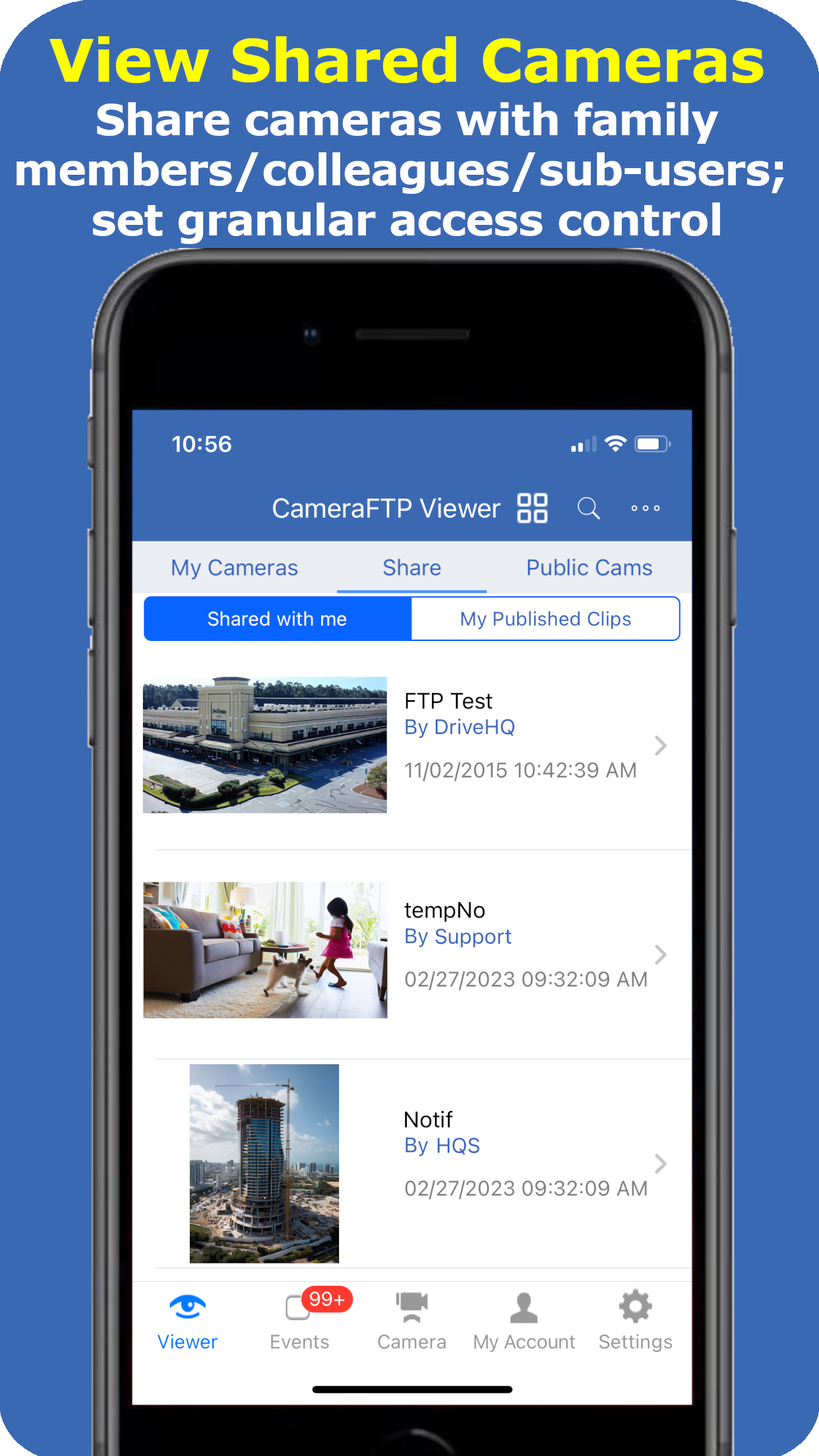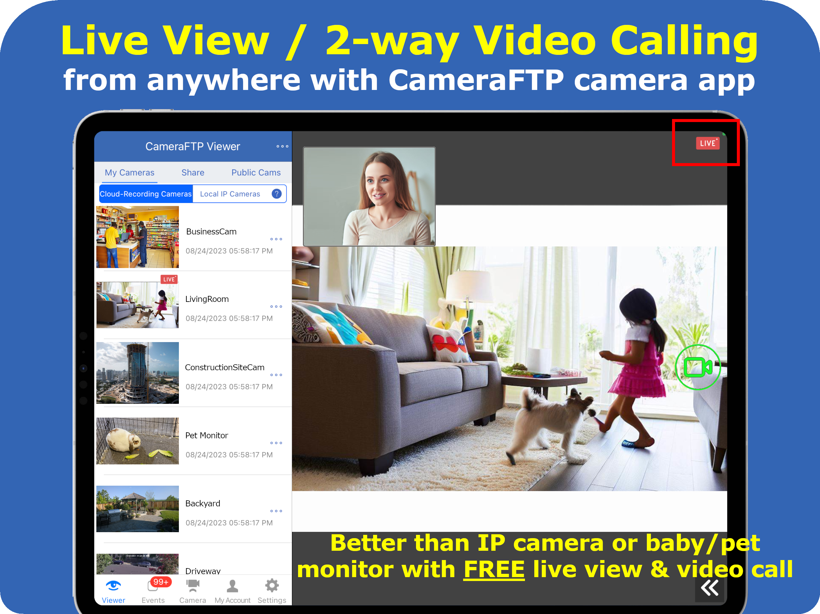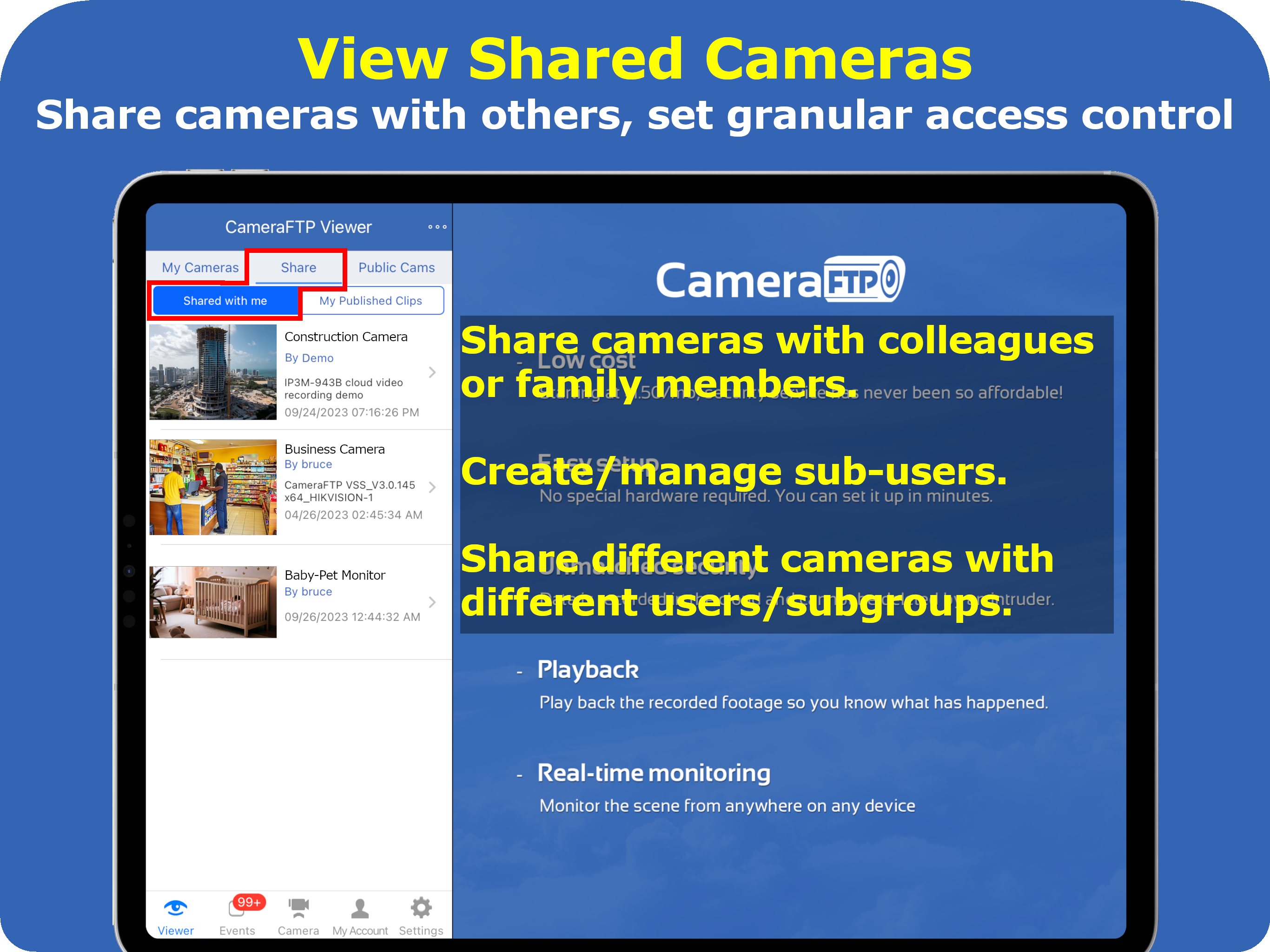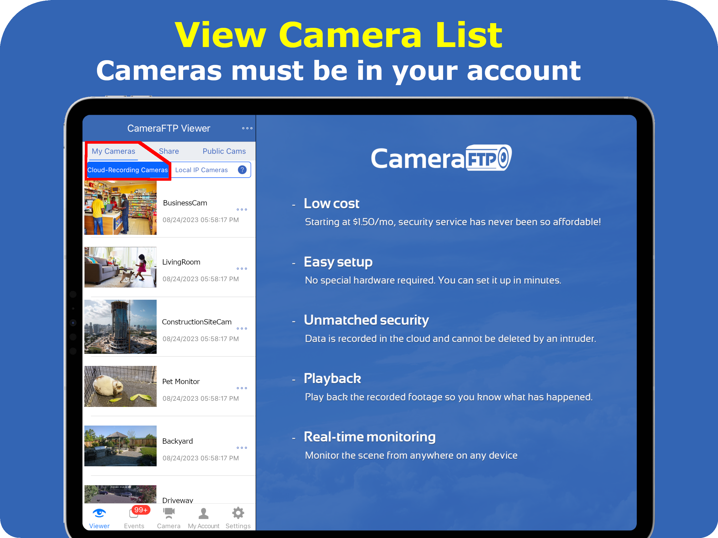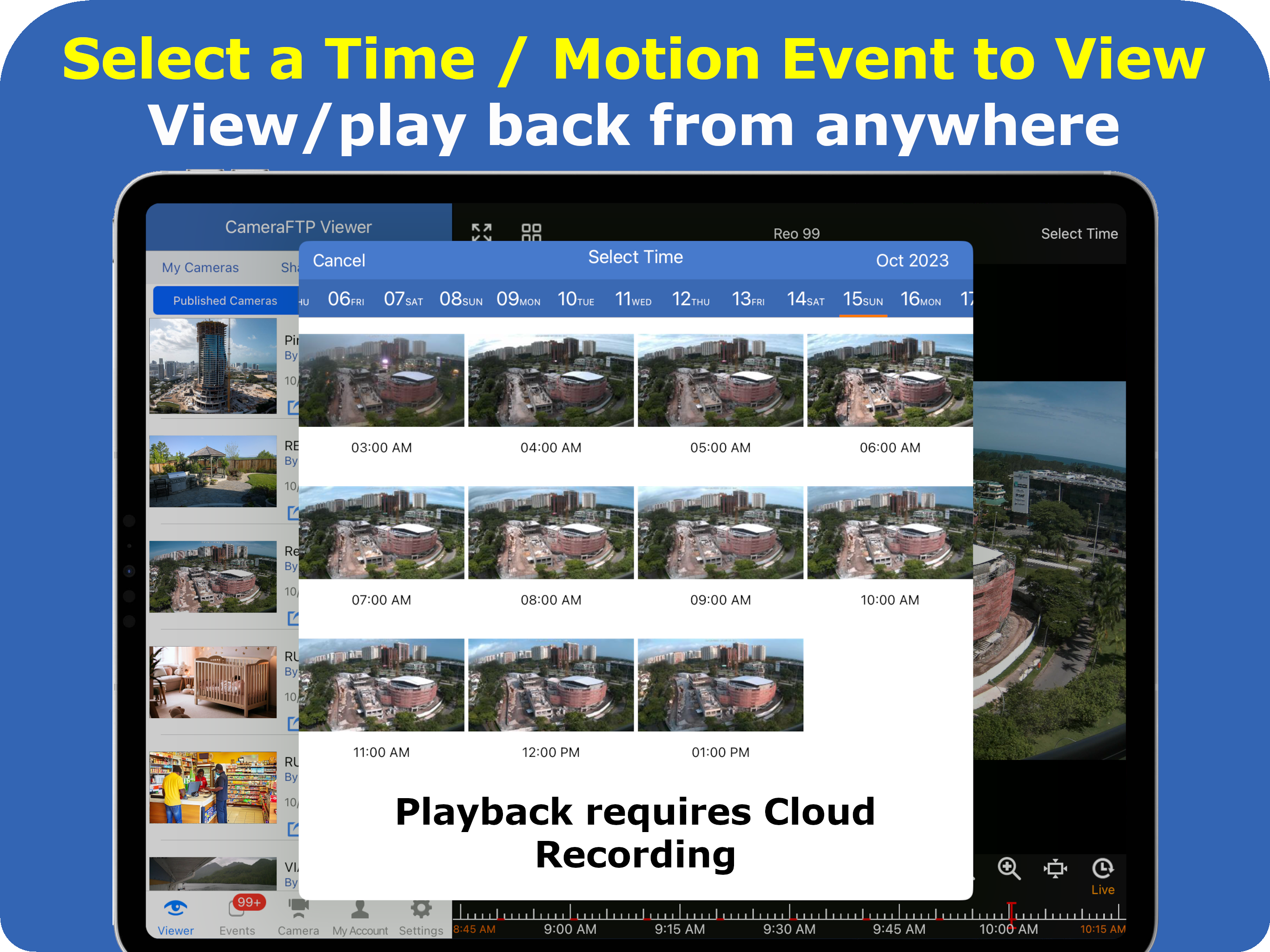 Mobile CameraFTP Viewer APP for iOS - View or play back cloud security camera footage on iPhone/iPad